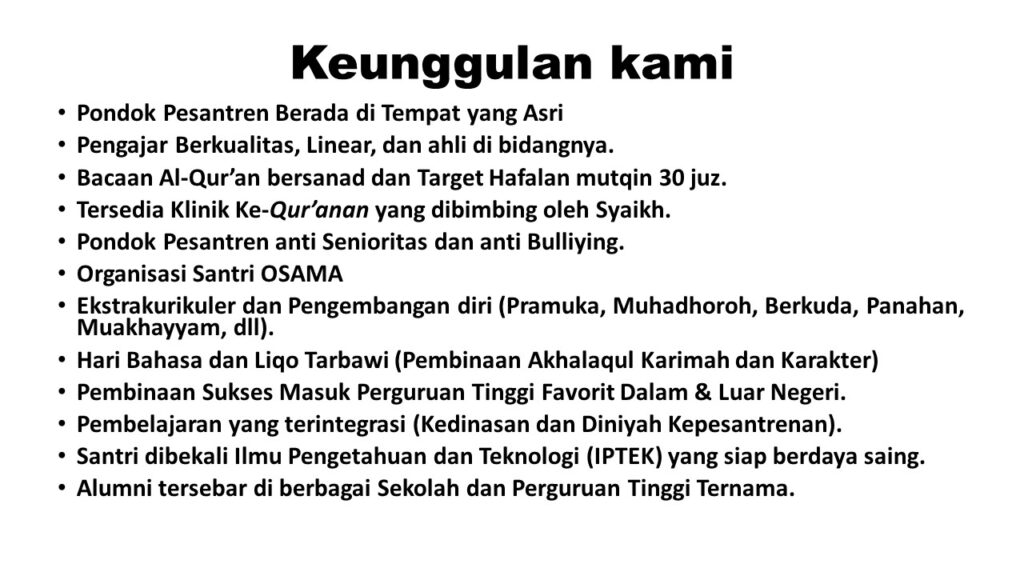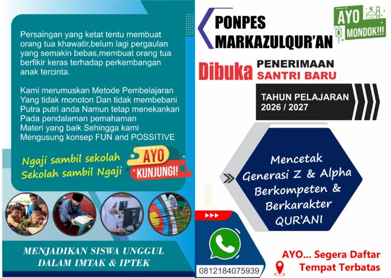Yuukk segera daftarkan putra/putri ayah bunda di Pondok Pesantren Markazul Qur’an “Menjadikan siswa unggul dibidang Imtak & Iptek”
