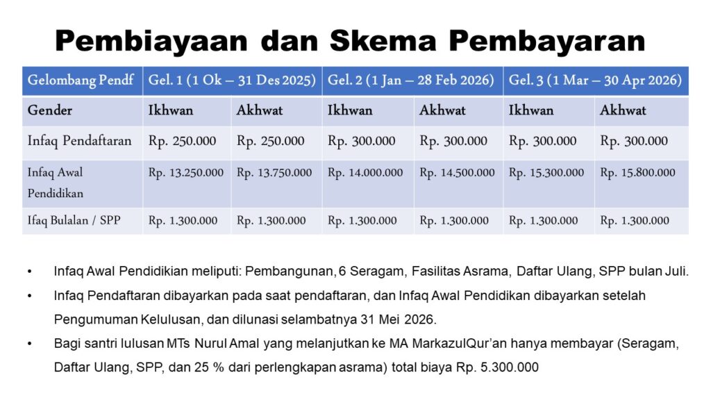 Besar harapan kami semoga putra putri Ayah Bunda dapat memperoleh pendidikan yang baik di Pondok Pesantren Markazul Qur’an dan menjadi keluarga besar Pondok Pesantren Markazul Qur’an.